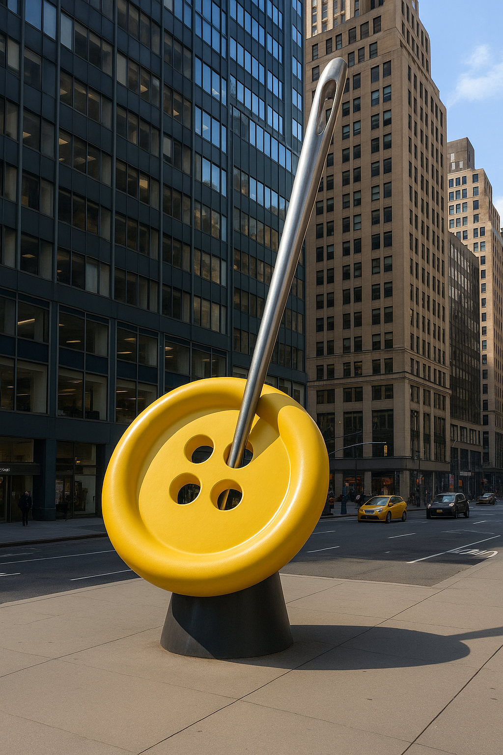 Treffpunkt an der bekannten Button- und Needle Statue in der W 39th Street,